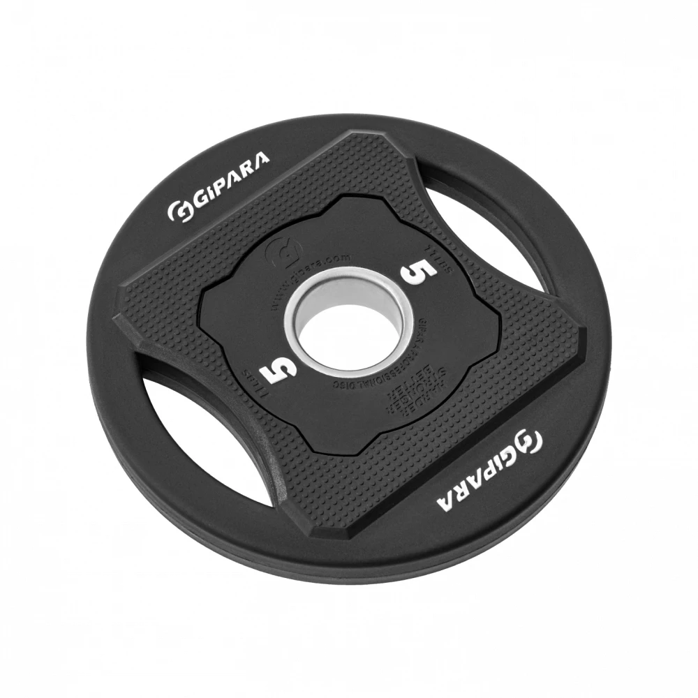 Gipara Olympic plates are distinguished by interesting design, uniform, elegant colors and clear weight marking. Safe handles make them easy to carry. The inside diameter of the holes in the discs is designed to fit Olympic bars. The hole is surrounded by a stainless steel ring, which makes it easier to put on and take off the load from the bar.