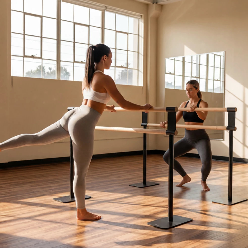 Profesjonalny podwójny drążek do barré wolnostojący to idealne rozwiązanie przede wszystkim do treningu funkcjonalnego oraz do studia pilates. Świetnie sprawdzi się również w salach treningowych, studiach tańca i klubach fitness. Model o wymiarach 106 cm x 150 cm został wyposażony w dwa drążki wykonane z drewna bukowego, które łączy trwałość, estetykę i komfort użytkowania.